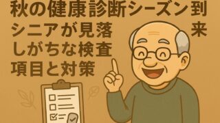 健康 秋の健康診断シーズン到来!シニアが見落としがちな検査項目と対策 秋は健康診断の季節。血圧・血糖値・腎機能など、シニアが見落としがちな検査項目をわかりやすく整理。結果の見方や、日常生活でできる予防・改善のポイントも紹介します。 2025年10月15日 健康