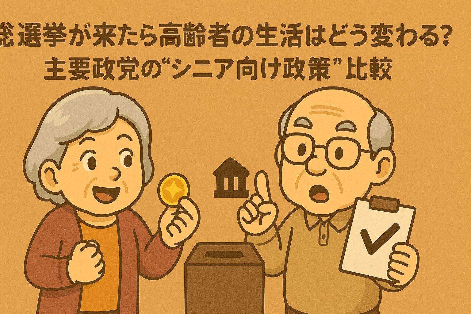 総選挙は“国全体の話”に見えるけど、実際は親の生活費・医療費・年金・介護に全部つながっていいる。特に医療費・物価対策は政党によって方向性が違うから、少しだけニュースを追っておくと備えがしやすくなるで。家族で話しておくと安心につなげよう。