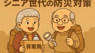 生活 シニア世代の防災対策|災害時に困らないための準備と備え 地震や台風などの災害時、高齢者が安全に過ごすためには事前の備えが大切です。この記事では、シニア世代に必要な防災グッズや備蓄のポイント、避難時に気をつけたいことをわかりやすく解説します。 2025年10月31日 生活