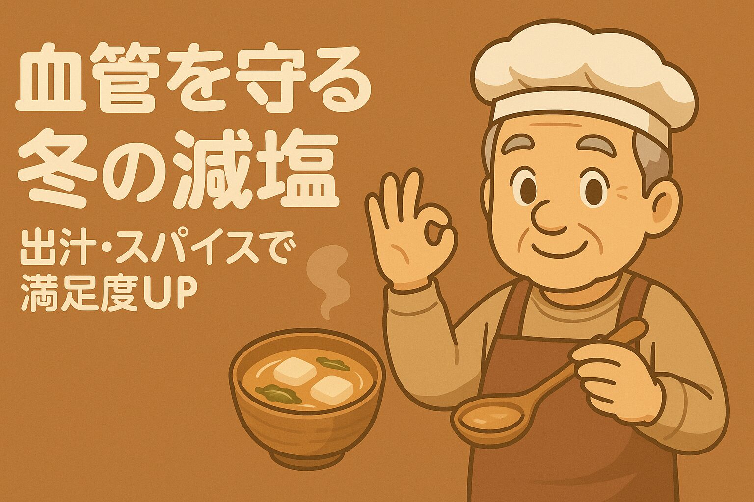寒波のニュースが増える季節は、血圧が上がりやすい時期でもあるんよね。外が寒い→交感神経が優位→血管がキュッと縮むうえに、鍋・汁物・麺で“知らんうちに塩分オーバー”が起きがち。親世代や高血圧の既往がある人は特に要注意や。せやけど、味を落とさずに減塩するコツはちゃんとある。今回は、出汁(だし)とスパイスを味方にして、冬でも満足度を下げへん工夫をまとめたで。